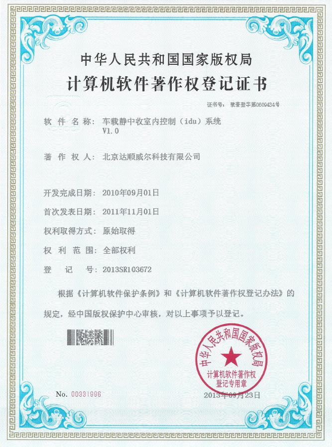 车载静中收室内控制0609434:车载静中收室内控制(idu)系统v1.0